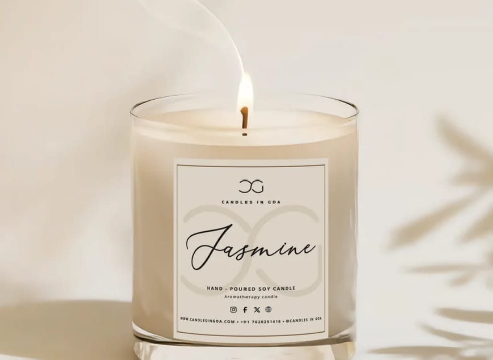 Candles In Goa- Jasmine, Aromatherapy Scented Candle, Handcrafted in India.